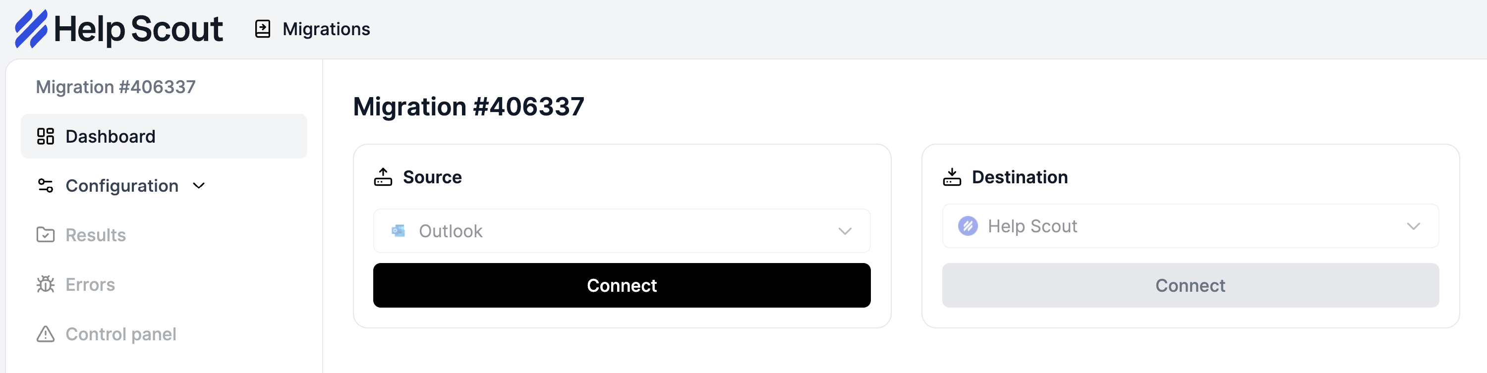Click Connect next to Help Scout under the Where do you want to migrate? heading. Click Authorize to allow access to your Help Scout account.