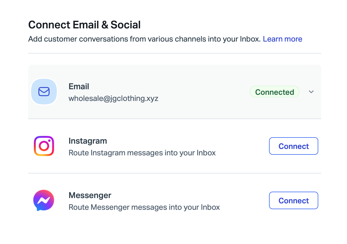 - Head to Manage > Inbox(es) > [Choose Your Inbox] > Connect Email & Social in Help Scout. Click Connect next to Mesenger.