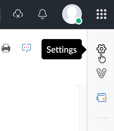 Look for the gear icon on the right navigation bar to open Settings.