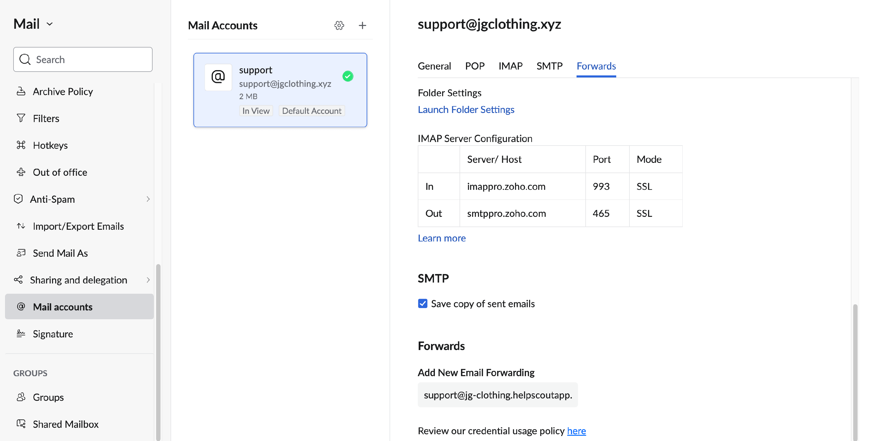 Auto-forward From Zoho Mail to Help Scout