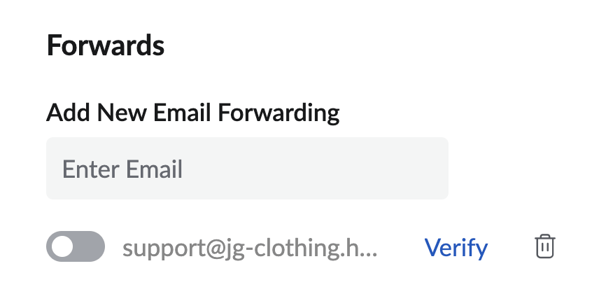 Note that the forwarding address shows below with a link to Verify it.