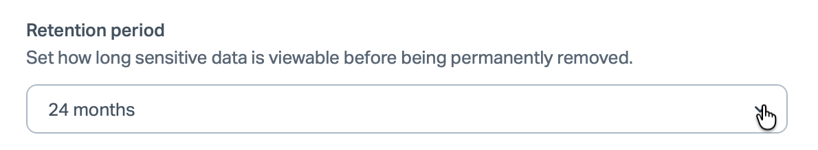 Set your Retention Period to specify how long original data remains viewable before permanent deletion. This applies to identified PII and attachments.