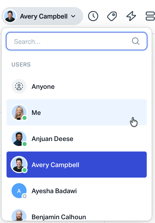 - Anywhere the Assign column appears — hover over the user's name