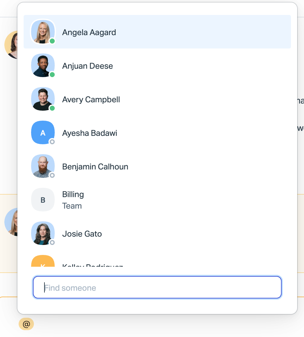 A teammate’s status will show where it’s helpful to understand whether they’re available. This is shown through a presence indicator on their photo or avatar, including: