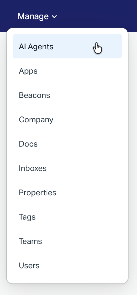 Head to Manage > AI Agents.