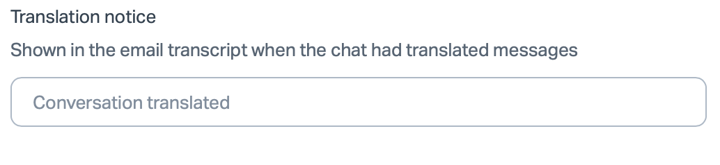 - Translation notice for the email transcript — the message included when the chat transcript is emailed to the customer after the conversation
